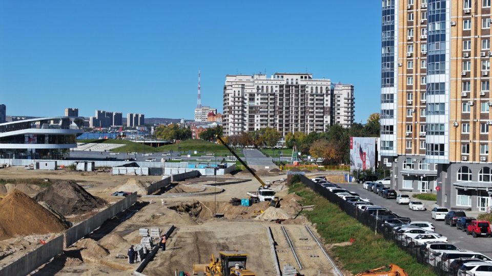 Протяженность участка реконструкции от улицы Театральной до улицы Островского 1 километр. Сейчас здесь идет устройство дорожной одежды, ливневой канализации и тротуаров, выполняется монтаж бортового камня, переустройство ЛЭП и устройство сетей...