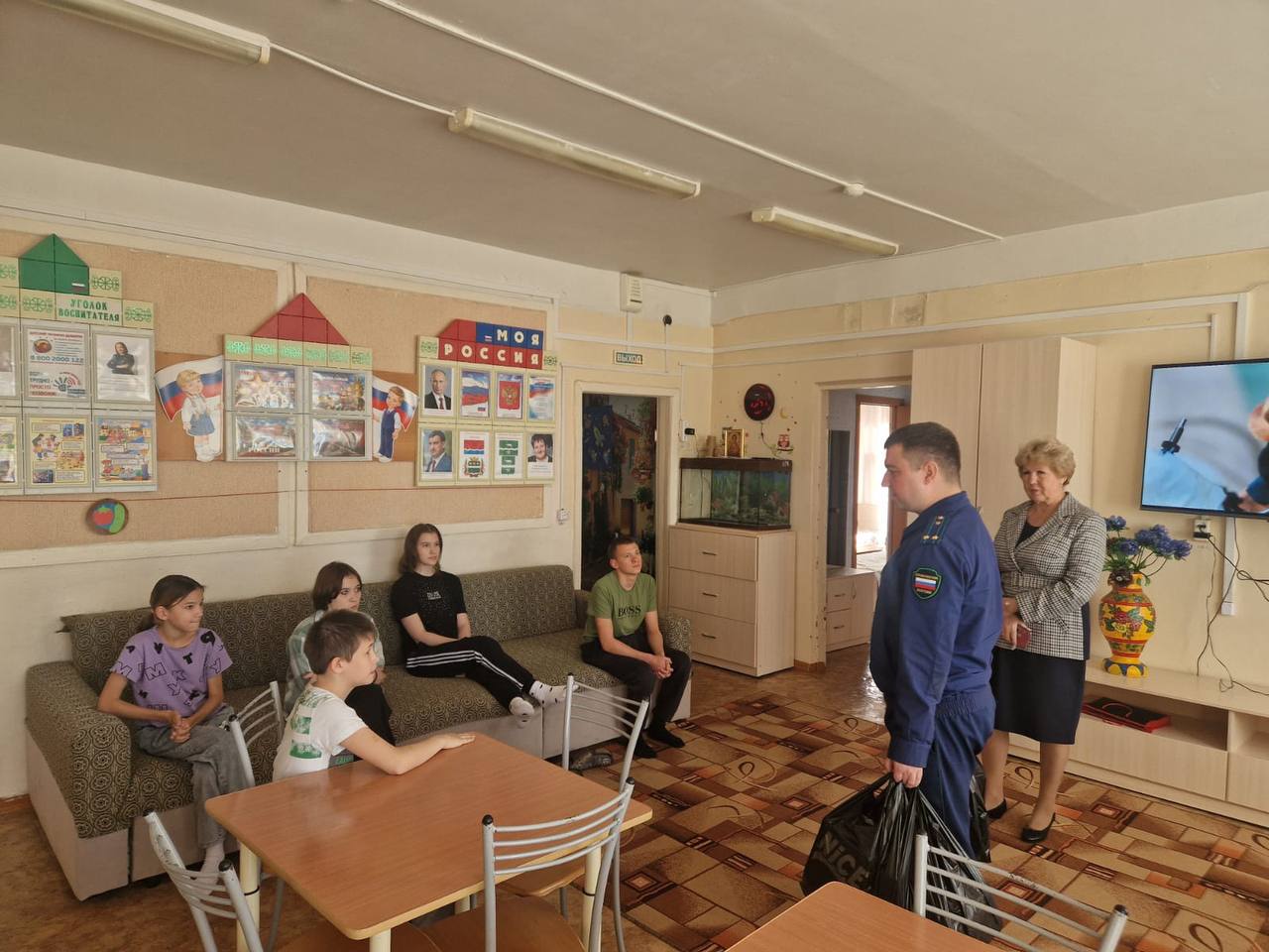 Кроме того, в рамках рабочей поездки прокурор посетил Тындинский социально-реабилитационный центр для несовершеннолетних в пос. Чильчи, где провел беседу с воспитанниками по вопросам профилактики правонарушений и преступлений несовершеннолетних, а также вручил сладкие подарки.