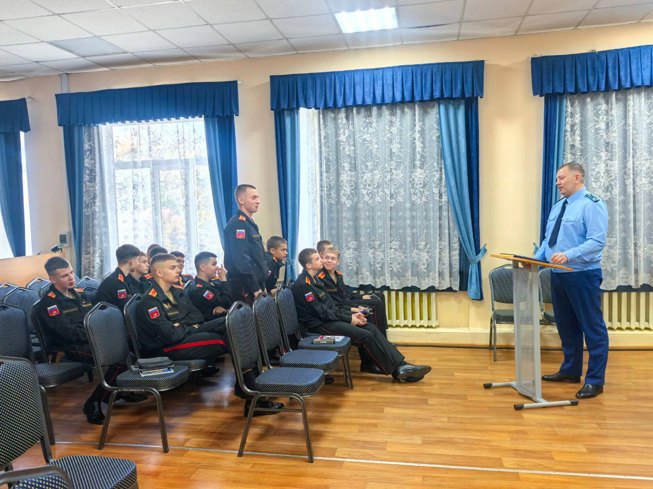 Заместитель прокурора области Александр Трифонов провел учебное занятие для кадетов 10 и 11 классов военно-юридической профильной группы ГОАУ Амурской области «Амурский кадетский корпус имени героя Советского Союза генерал-майора Ю.В. Кузнецова».