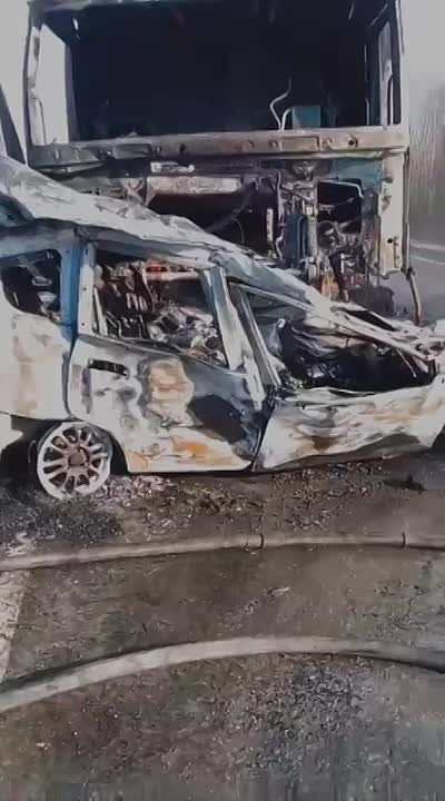 По предварительной информации в 12:30 водитель, управляя автомобилем Toyota Probox, совершил столкновение с грузовым автомобилем, в следствие чего произошло возгорание транспортных средств.