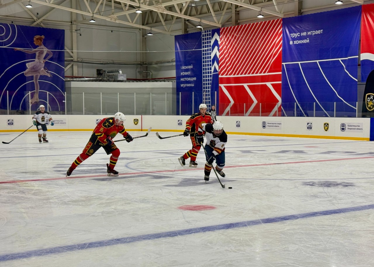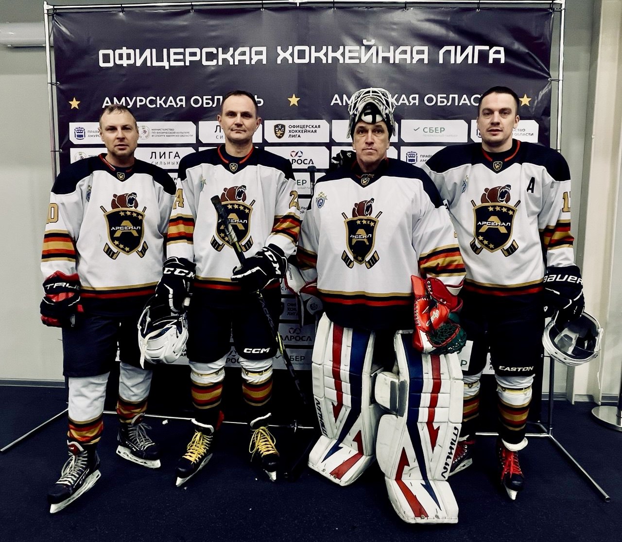 Заместитель руководителя следственного управления Следственного комитета Российской Федерации по Амурской области Антон Сыч, руководитель первого отдела по расследованию особо важных дел Иван Залунин, заместитель руководителя отдела по приему граждан и документационному обеспечению Алексей Перелыгин и заместитель руководителя Благовещенского межрайонного следственного отдела Антон Маньков приняли участие в серии квалификационных матчей открытия Офицерской хоккейной лиги в Амурской области.