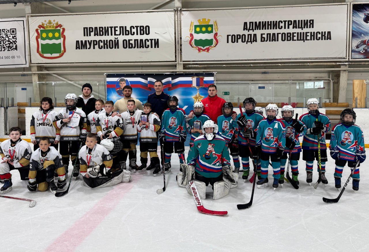 В соревнованиях по хоккею «Кубок Владимира Барахтенко», прошедших на стадионе «Спартак» в Благовещенске, приняли участие юные хоккеисты Амурской области 2016-2017 годов рождения. На лед вышли команды «Форвард» и «Смена» из Благовещенска, «Союз» из Свободного и «Надежда» из Новобурейска. Участие в церемонии награждения воспитанников спортивных клубов принял заместитель руководителя следственного управления Следственного комитета Российской Федерации по Амурской области Антон Владимирович Сыч.