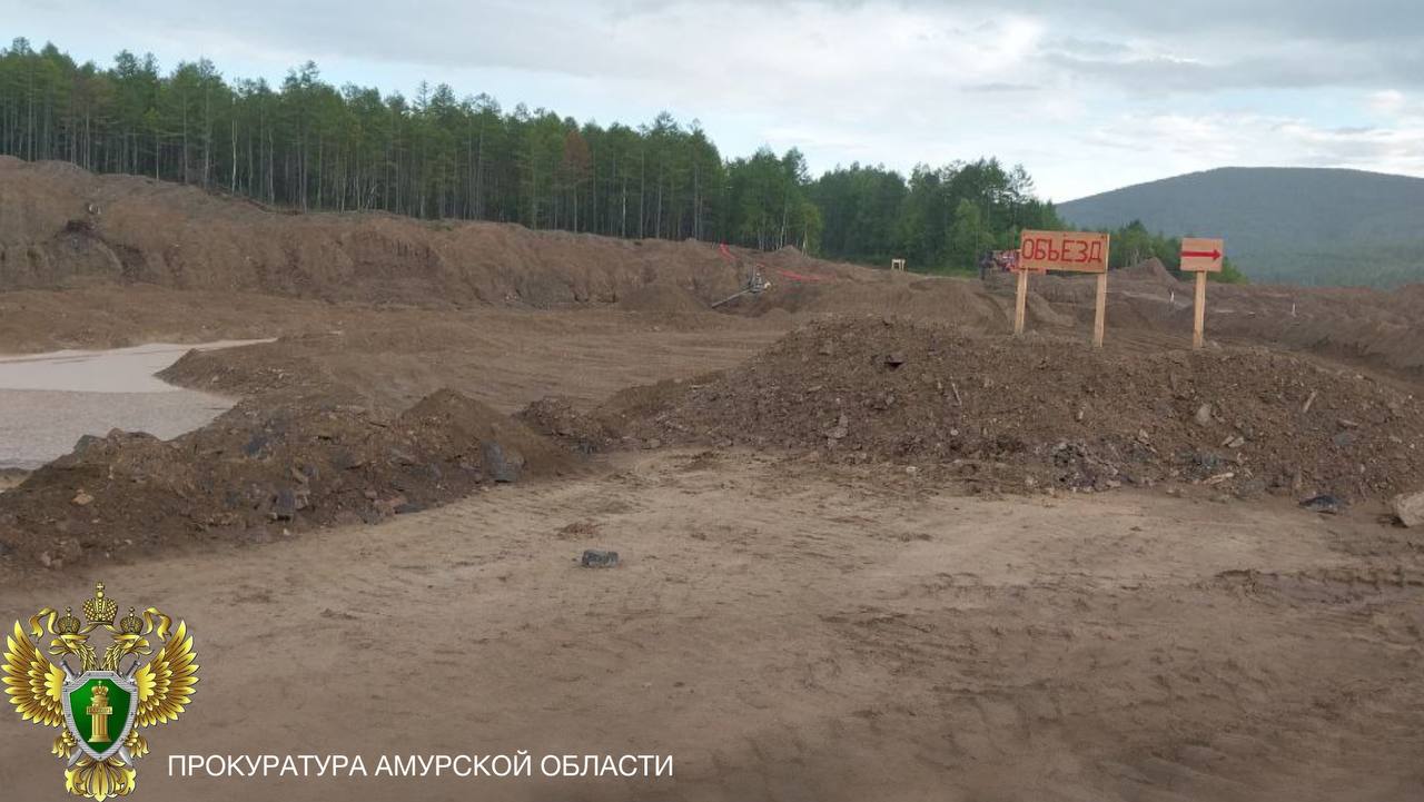 Установлено, что организация не имеющая разрешительных документов на пользование недрами на участке автодороги «Зея-Золотая гора» с целью подготовки полигона для добычи полезных ископаемых в виде россыпного золота произвела перенос полотна автодороги. В результате неправомерных действий юридического лица около 300 метров автодороги «Зея-Золотая гора» повреждено, затруднено и ограничено движение транспорта.