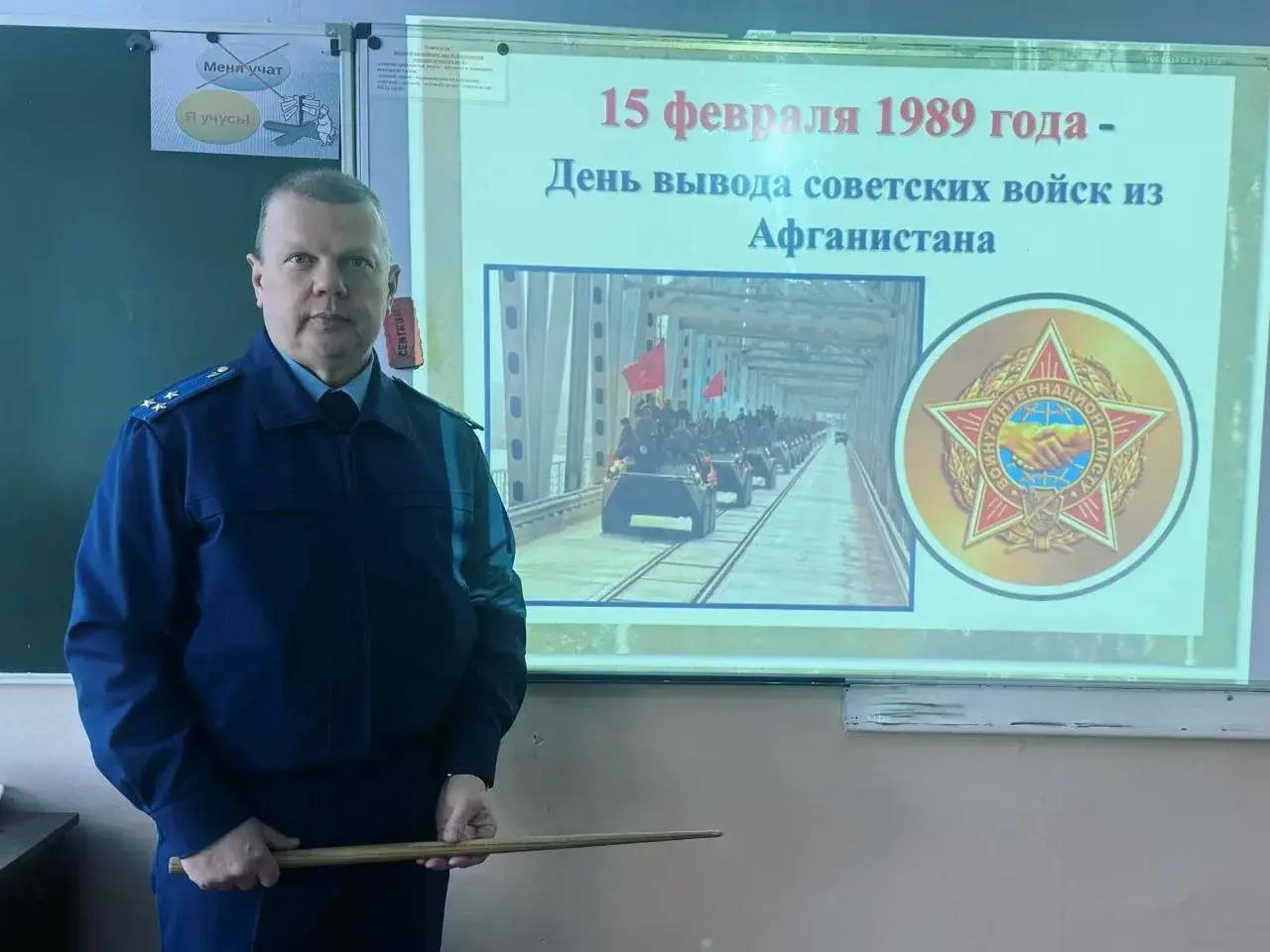 Работники прокуратур г. Благовещенска, Благовещенского, Константиновского, Октябрьского, Сковородинского районов, Тындинской городской прокуратуры провели в учебных заведениях беседы о воинах-интернационалистах, продемонстрировав видеосюжеты патриотической направленности.