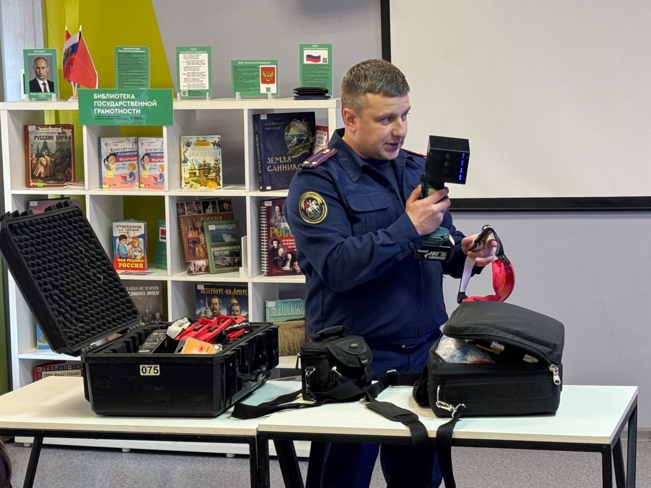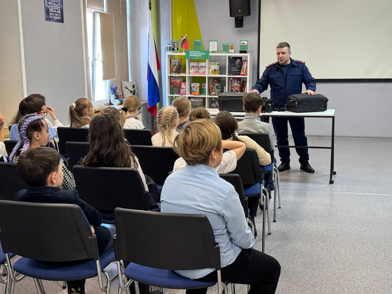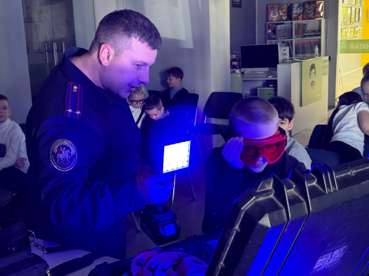 Старший следователь-криминалист отдела криминалистики следственного управления Следственного комитета Российской Федерации по Амурской области Илья Сергеевич Шумов провел обучающий урок для третьеклассников в муниципальной молодежной библиотеке им. А.П. Чехова по теме «Исследовательская библиотека «Кто за этим стоит?».