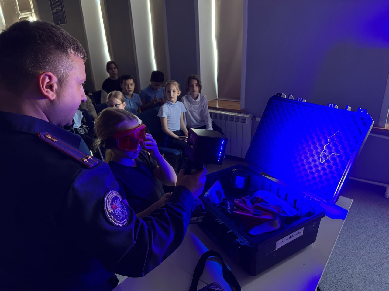 Илья Сергеевич рассказал детям о непростой работе следователя и продемонстрировал практическое применение криминалистической техники. Ребята почувствовали себя настоящими криминалистами, самостоятельно искали микрочастицы, применяя источник криминалистического света, и увидели применение криминалистом прибора для обнаружения скрытых видеокамер. Третьеклашки любознательно задавали специалисту множество вопросов и получали на них исчерпывающие ответы.