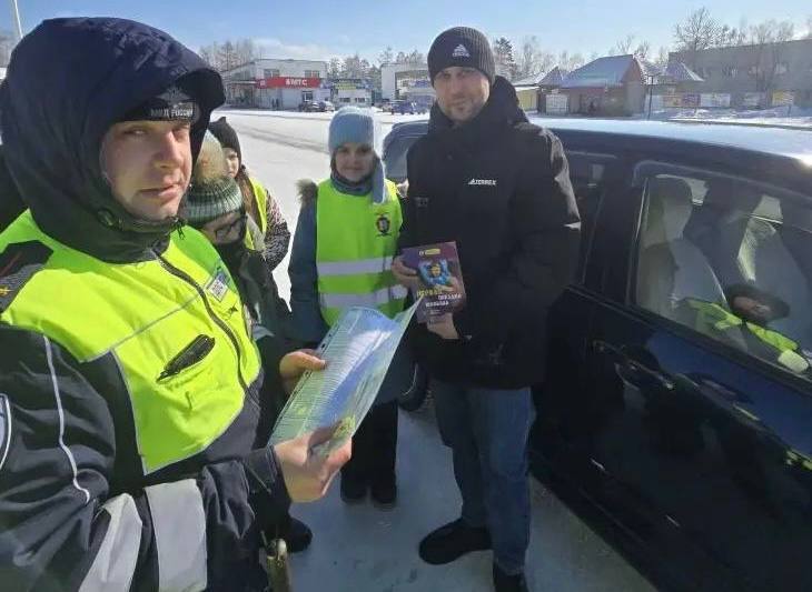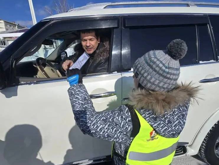 Полицейские напомнили автолюбителям о правилах перевозки детей в транспортных средствах, а юные инспекторы вручили полезные памятки.
