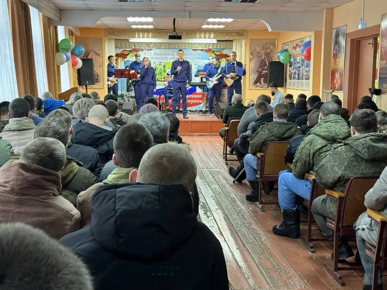 В военном госпитале города Белогорска работники прокуратуры области поздравили праздничным концертом участников специальной военной операции с Днем защитника Отечества.