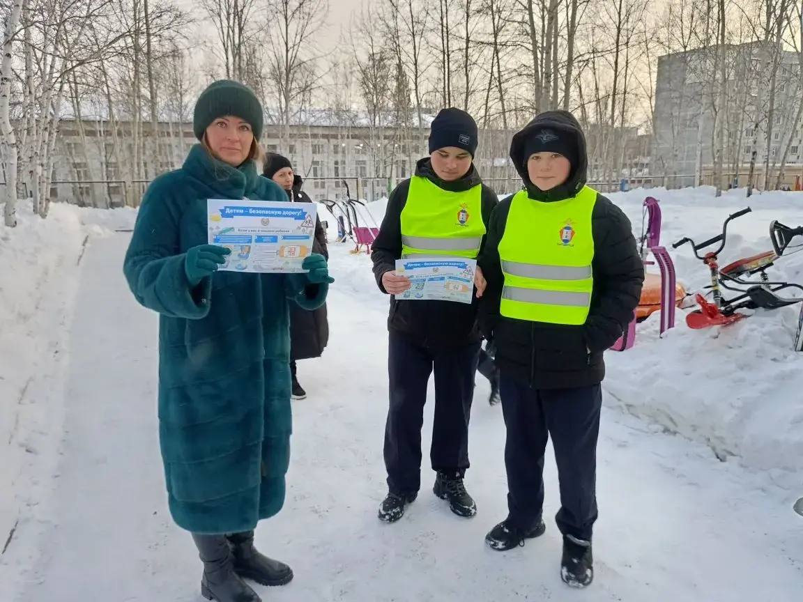 Сотрудники Госавтоинспекции и ученики МОБУ СОШ № 7 провели акцию вблизи детского сада «Радуга».