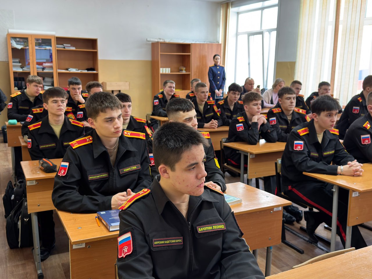 В рамках празднования Дня защитника Отечества и Всероссийской акции «Спасибо за верность профессии», помощник руководителя следственного управления Елена Александровна Зозуля, совместно с членом Межрегиональной общественной организации ветеранов военной контрразведки Восточного военного округа, участником боевых действий в Чеченской Республике и Приднестровье подполковником Виктором Николаевичем Юсиным, награжденным орденом Мужества и медалью «За боевые заслуги», провели мероприятие, направленное на воспитание патриотизма у подрастающего поколения. Для учащихся подшефного кадетского класса школы-интерната «Амурский кадетский корпус имени Героя Советского Союза генерал-майора Ю.В. Кузнецова» организован «Урок Мужества», посвящённый памяти и героизму защитников нашей Родины.