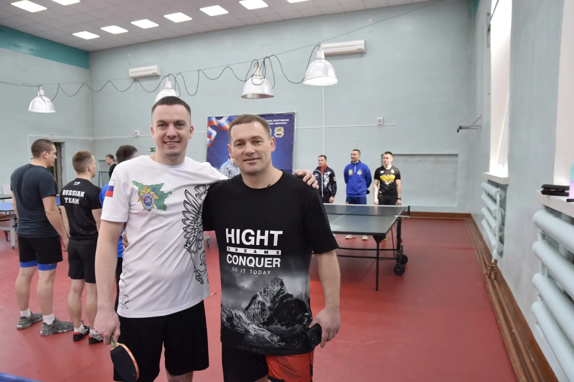 Сотрудники следственного управления Следственного комитета Российской Федерации по Амурской области вновь показали пример активного образа жизни и командного духа! Руководитель Благовещенского межрайонного следственного отдела Владимир Сергеевич Мишин и заместитель руководителя Антон Олегович Маньков приняли участие в соревнованиях по настольному теннису, которые прошли в рамках мероприятий Общероссийского физкультурно-спортивного общества «Динамо».