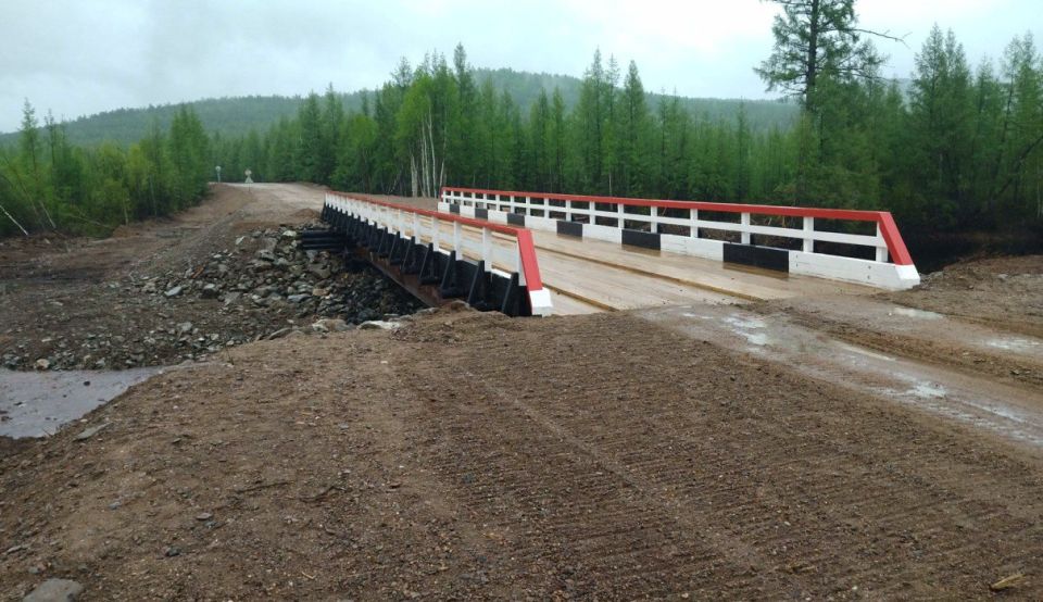 Три моста, расположенные на 18-м км через руч. Заячий, на 21-м км через руч. Железный и на 24-м км через руч. Онен, уже обновлены.На сооружениях восстановили ряжевые опоры с заборными стенками, деревянные пролеты заменили...