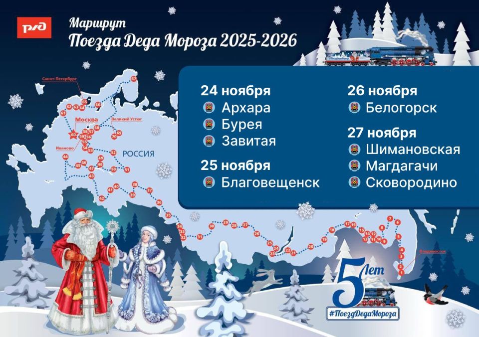 С 24 по 27 ноября новогодний экспресс сделает 8 остановок на станциях региона. Во время стоянок пройдет развлекательное представление с участием артистов. Посещение вагонов «Снежная Королева», «Лавка», «Буфет» для всех желающих - свободное.Отдельная...