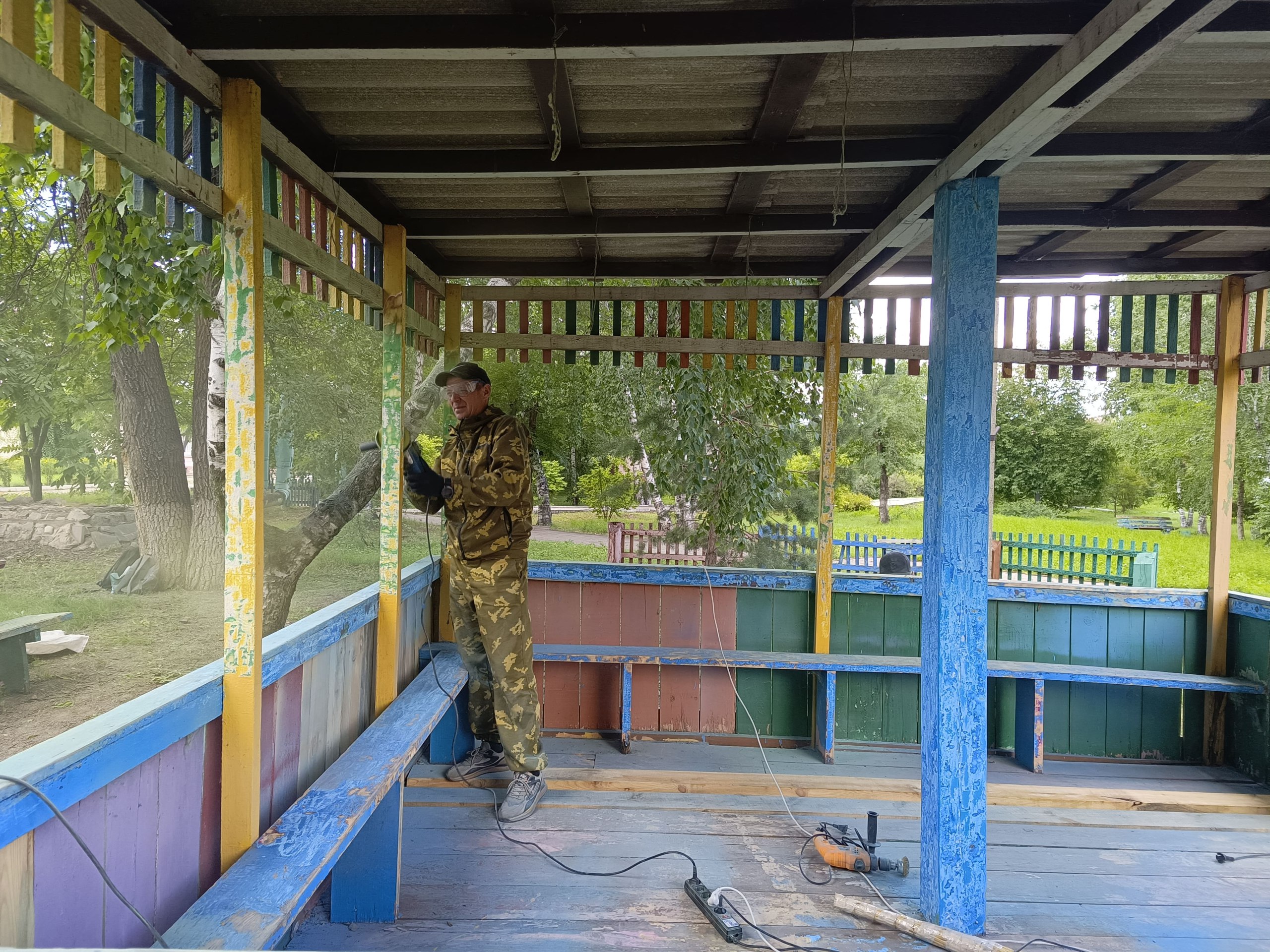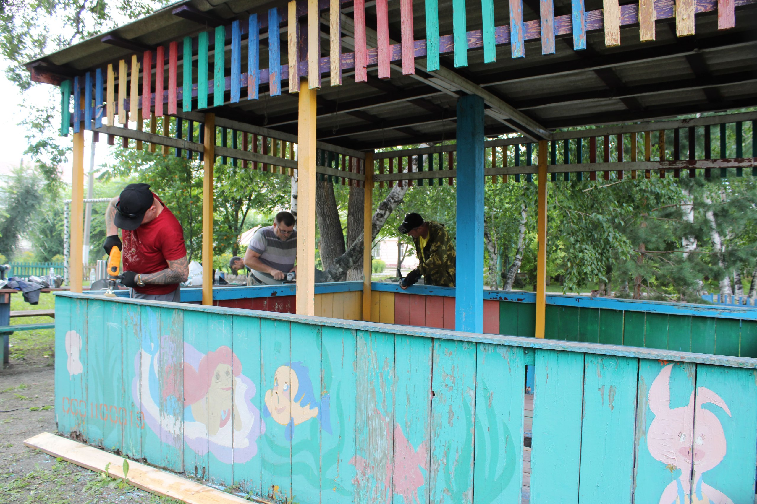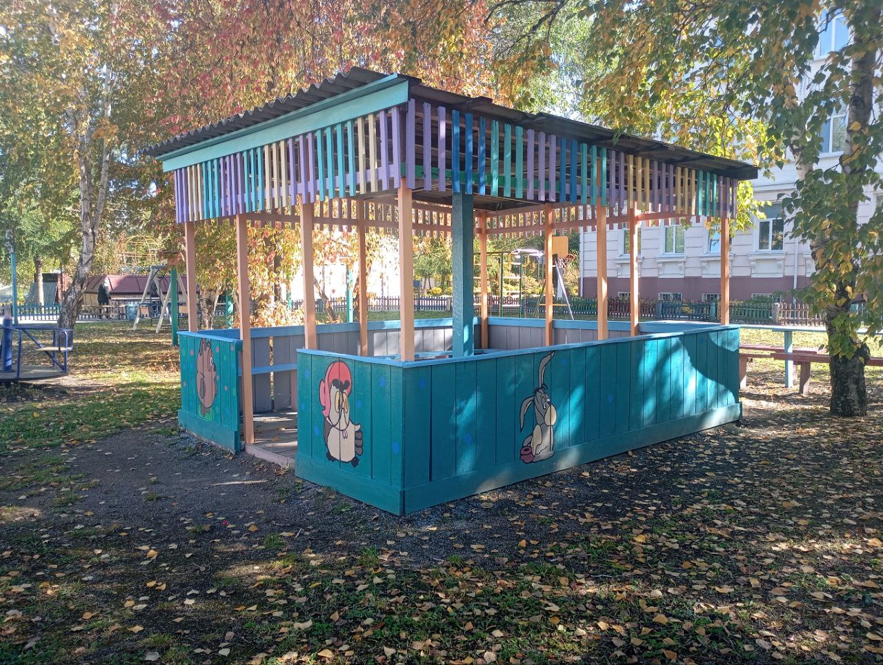 На площадке провели косметический ремонт, обновили краску, заменили ветхие элементы, установили новые удобные лавочки. Теперь на обновлённой территории ребятам проводят творческие мастер-классы.