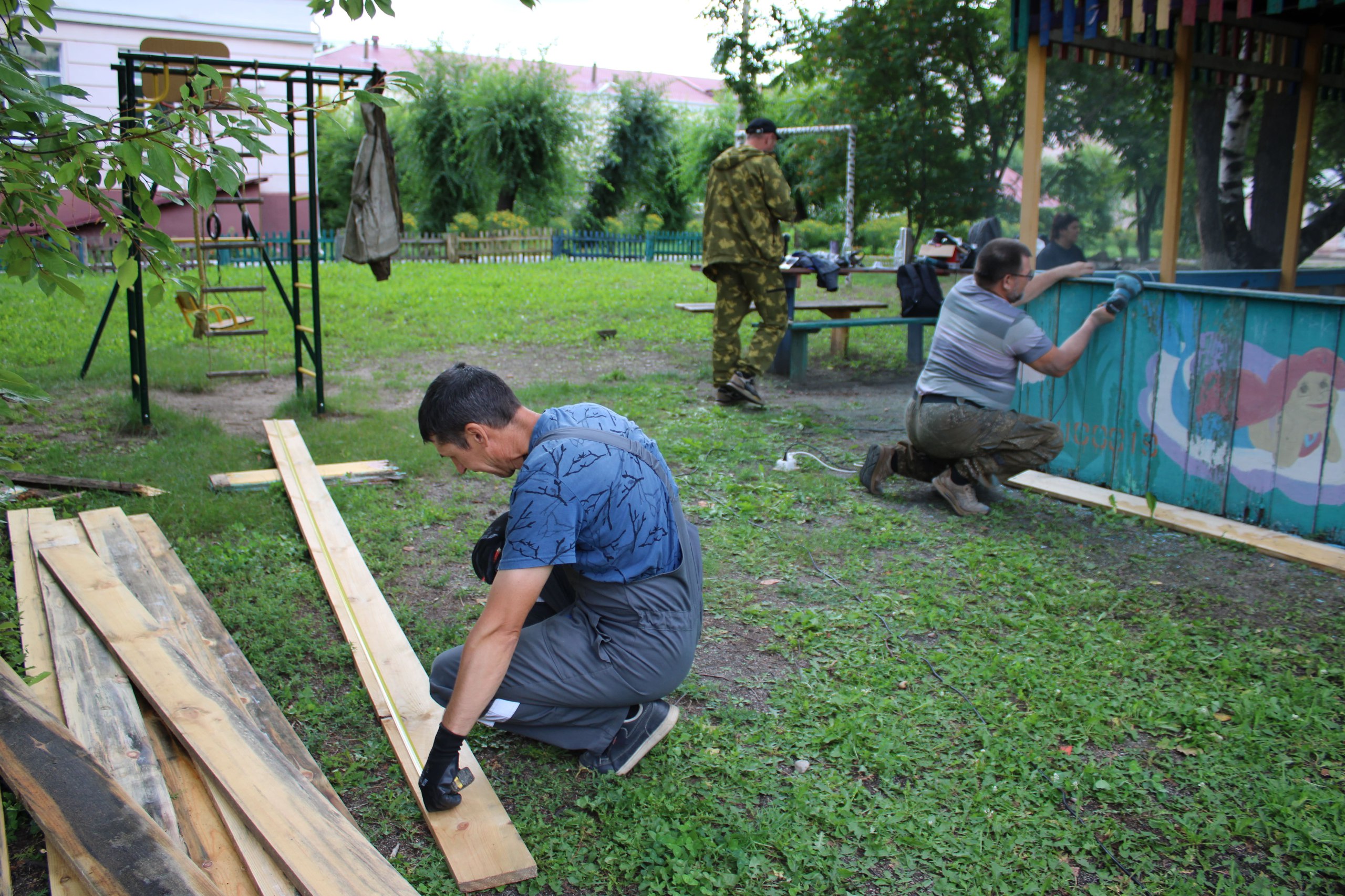 Цель волонтеров - создать комфортную обстановку для детей, находящихся на длительном лечении. До начала работ детская площадка была изношена, деревянные конструкции и покрытия нуждались в срочном обновлении.