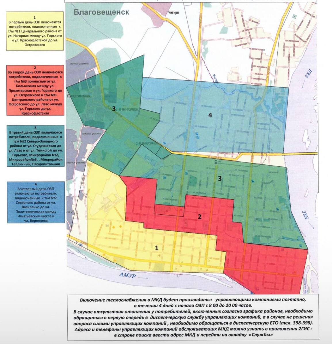 В четвертый день включат потребителей северного района от ул. Василенко до ул. Политехнической между Игнатьевским шоссе и ул. Воронкова.