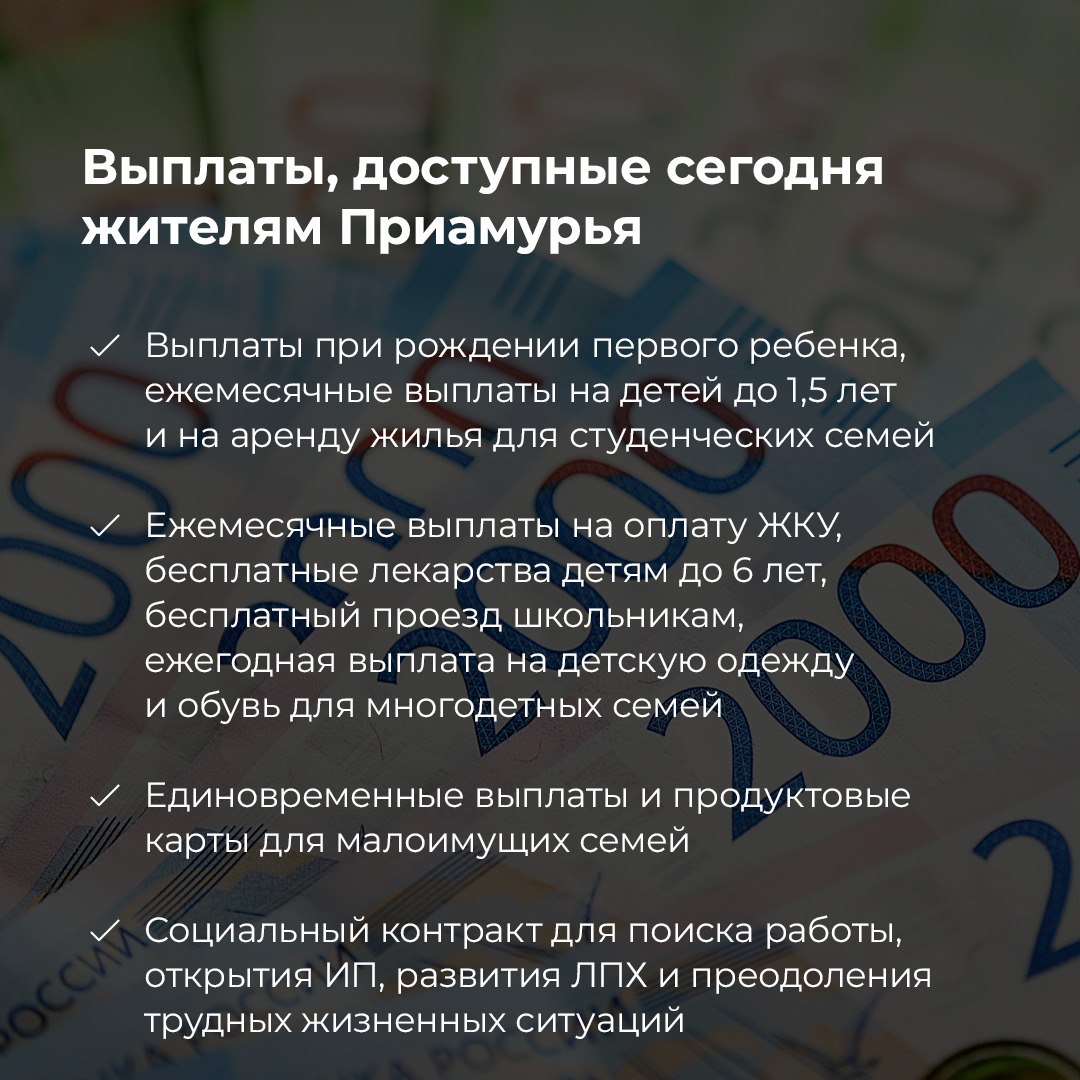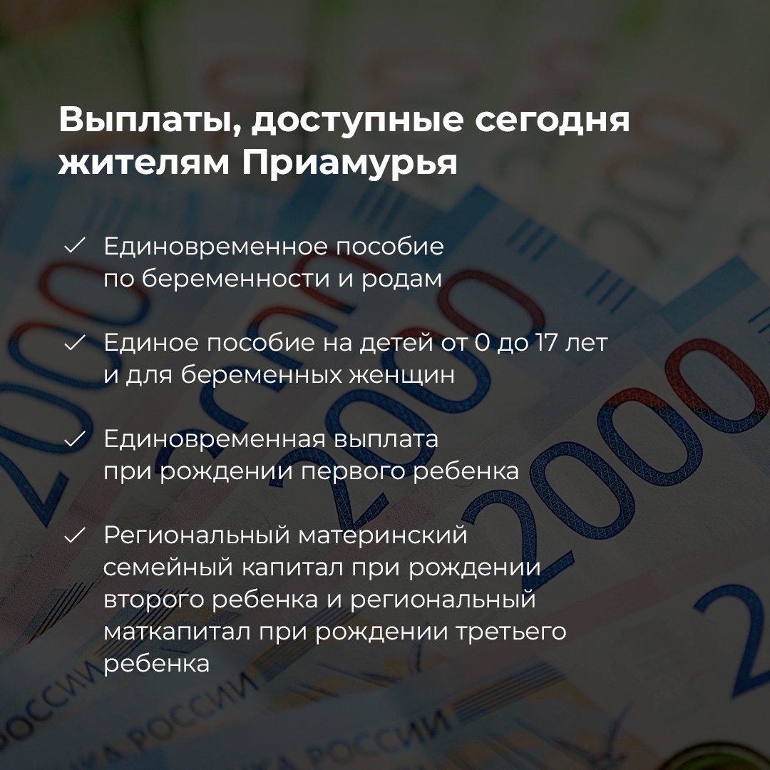 Более 40 тысяч амурских семей получают государственную поддержку. Будущие мамы, молодые родители и многодетные семьи могут рассчитывать на пособия, материнский капитал, компенсации на оплату ЖКУ и другие пособия и выплаты.