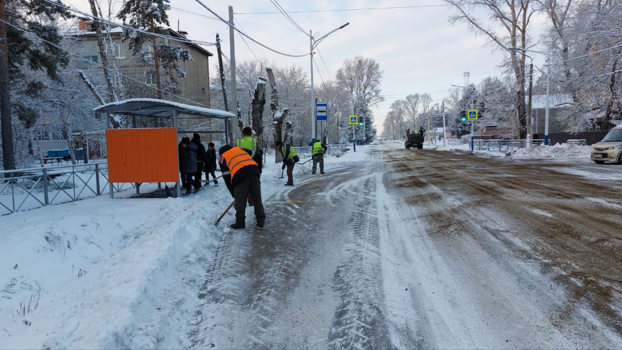 Расчищают остановки, подъезды к ним.
