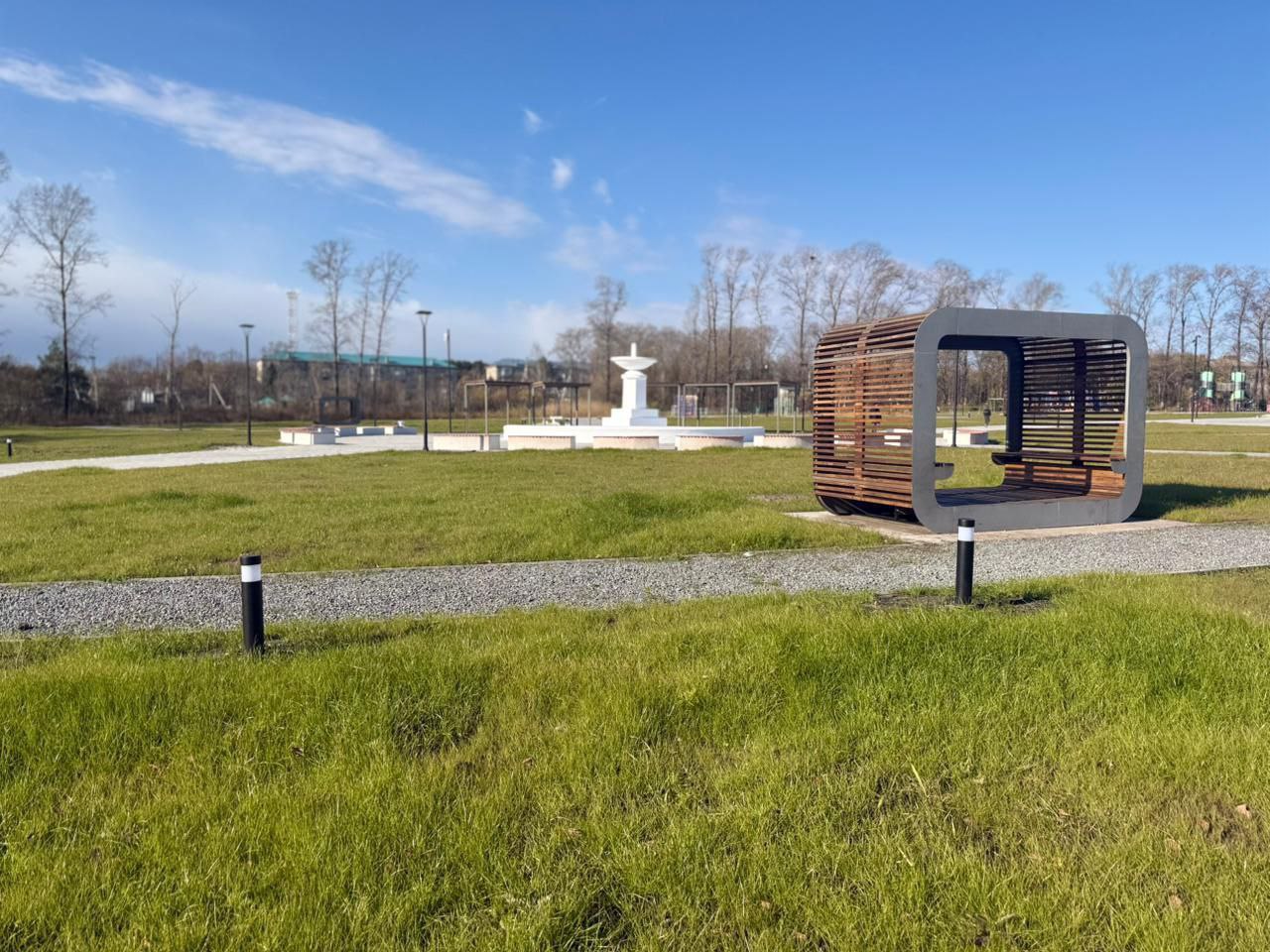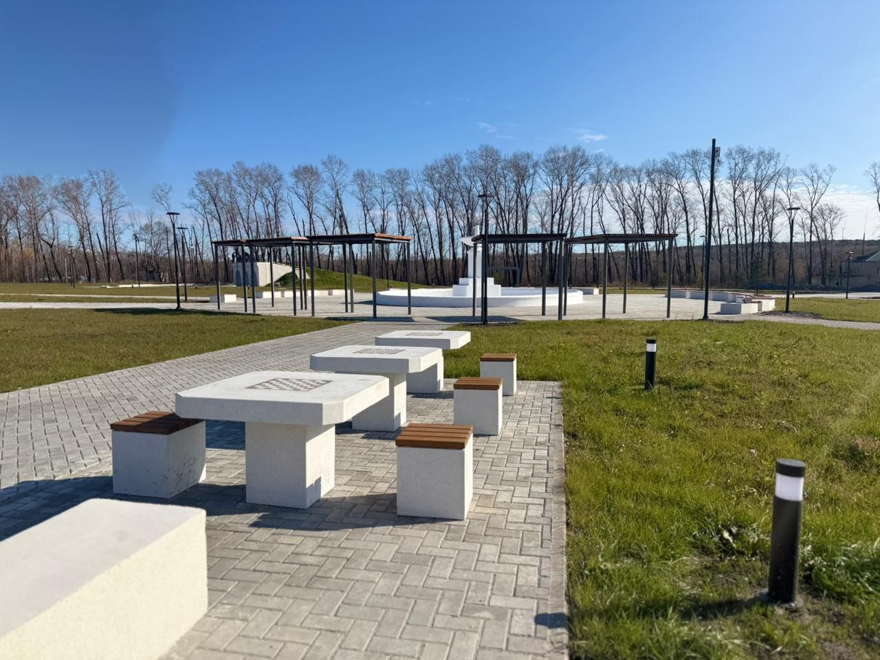 Любители активного отдыха смогут покататься на скейтплощадке, а для тех, кому нравится проводить время в тишине обустроят шахматную зону. В самом «сердце» парка установят световой фонтан.Объект готов уже на 97%. Завершить все работы планируют до конца года.