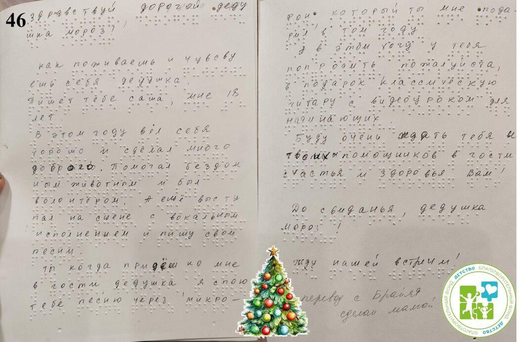 Чтобы стать частью новогоднего чуда, можно выбрать письмо из электронной базы писем фонда https://fond-detstvo.ru/magazin, приобрести подарок и принести его по адресу: ул. Комсомольская, 89, БФ «Детство» до 5 декабря. Амурчане уже исполнили мечты примерно 140 нуждающихся в чуде детей.