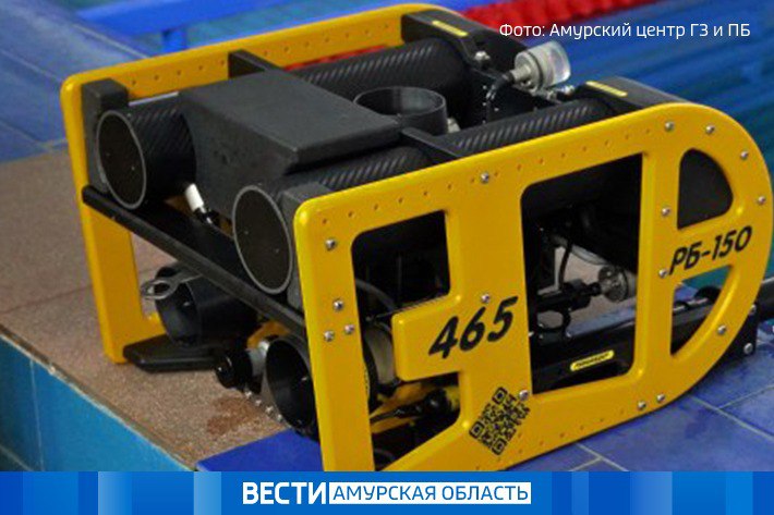 Подводный дрон для поисково-спасательного отряда Амурской области оснащен видеокамерой с подсветкой и манипулятором, который способен захватывать или перемещать небольшие объекты.