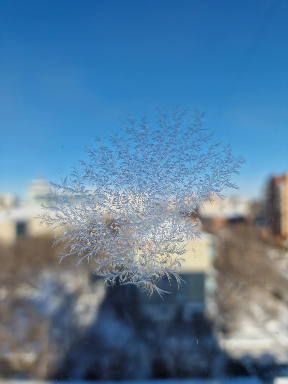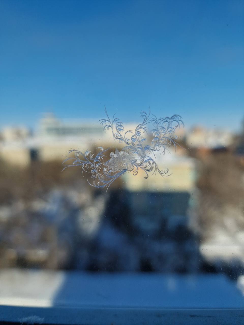 Вот такие витражи расписывает зима на окнах благовещенских зданий