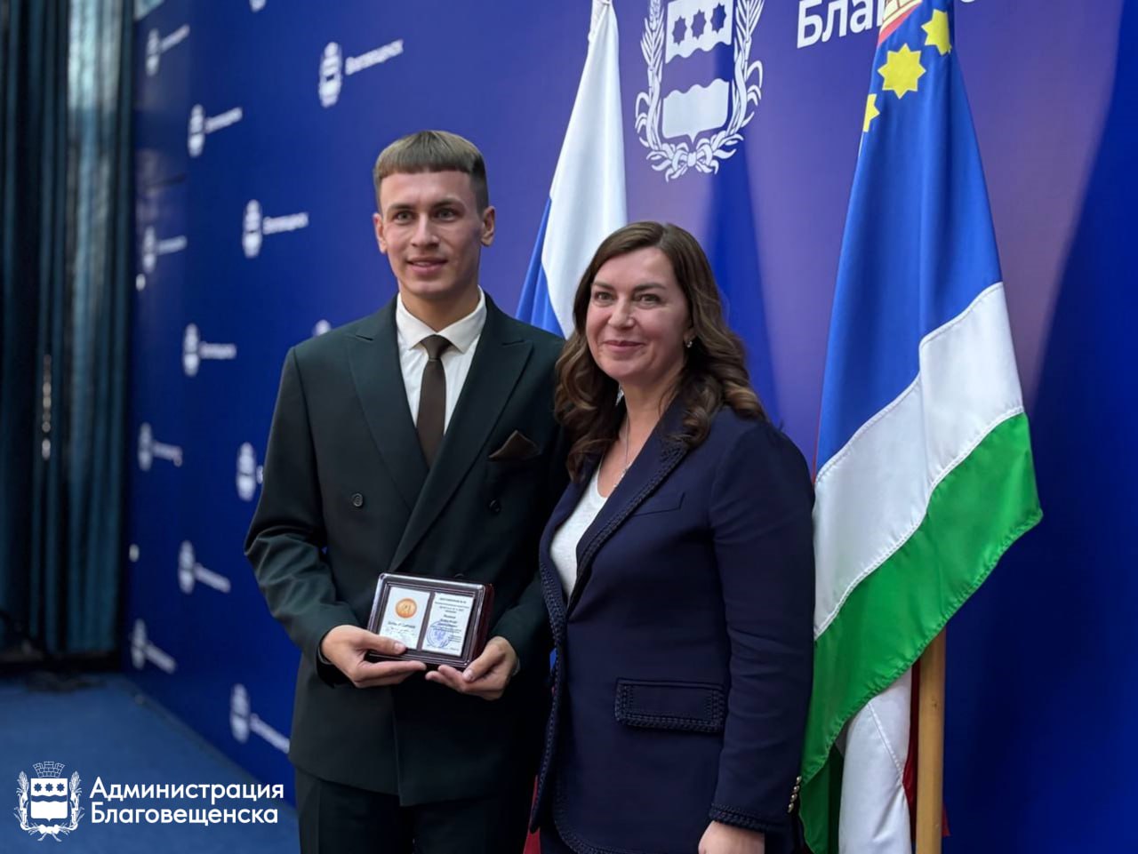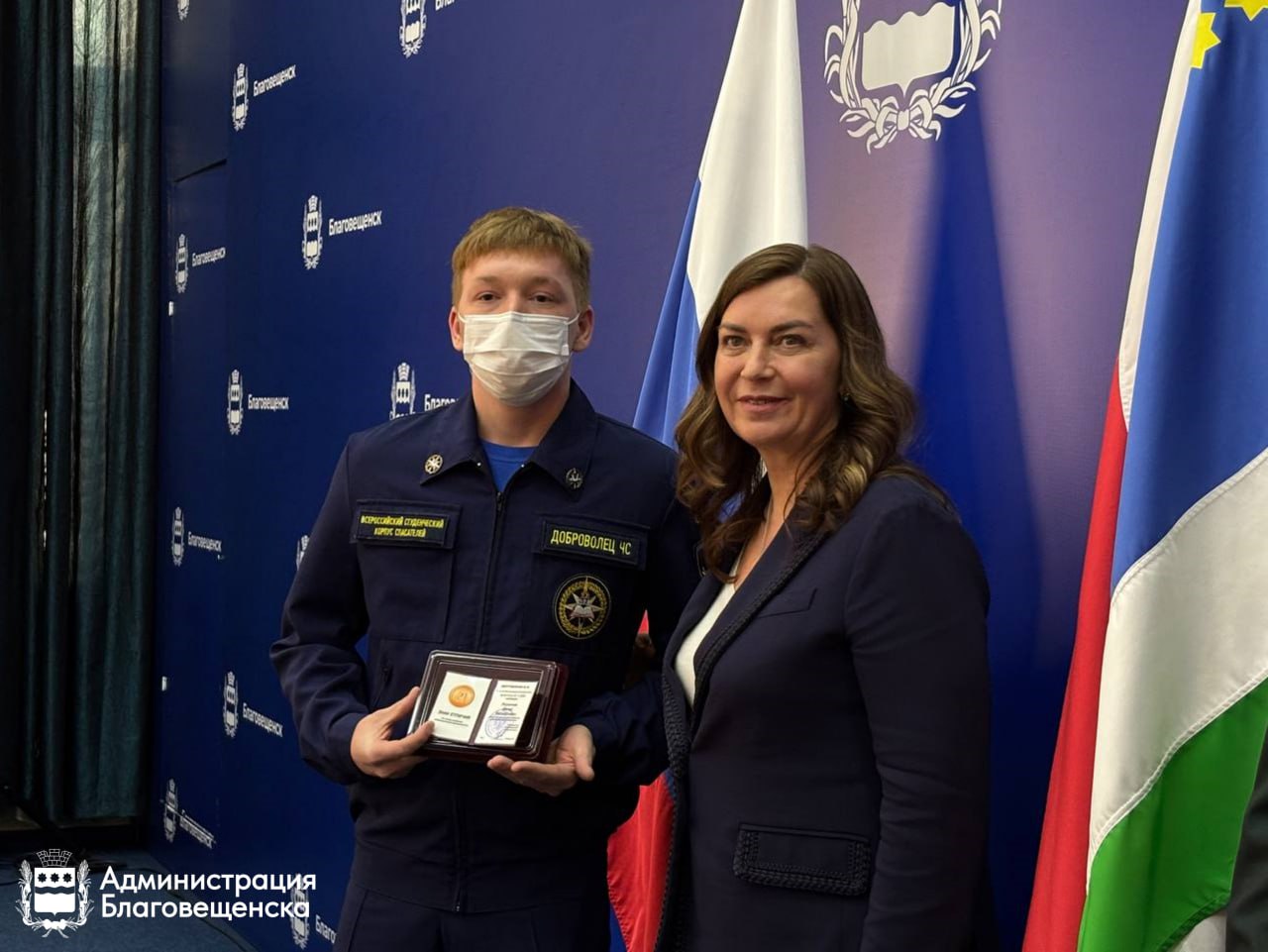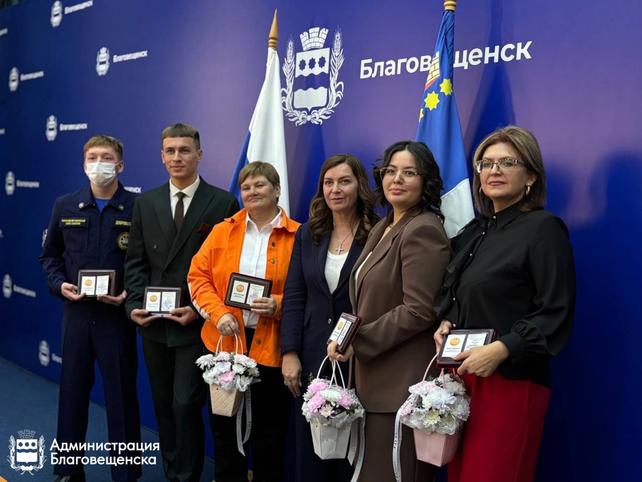 Пятерым благовещенским добровольцам вручили новую муниципальную награду