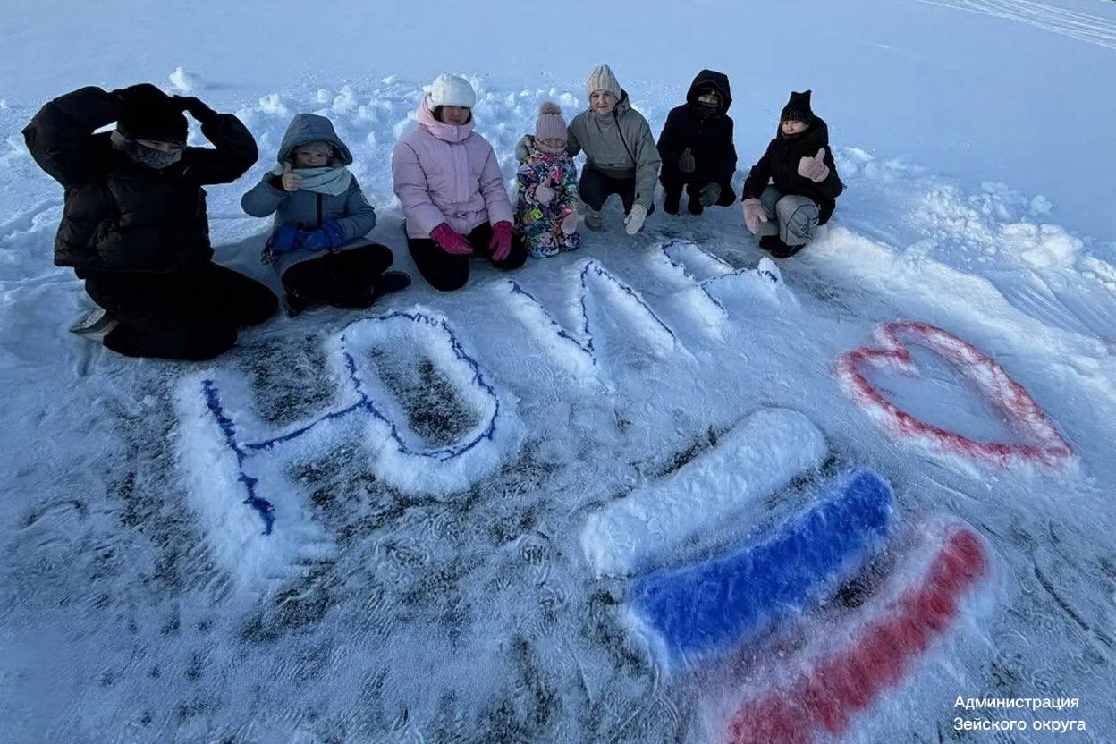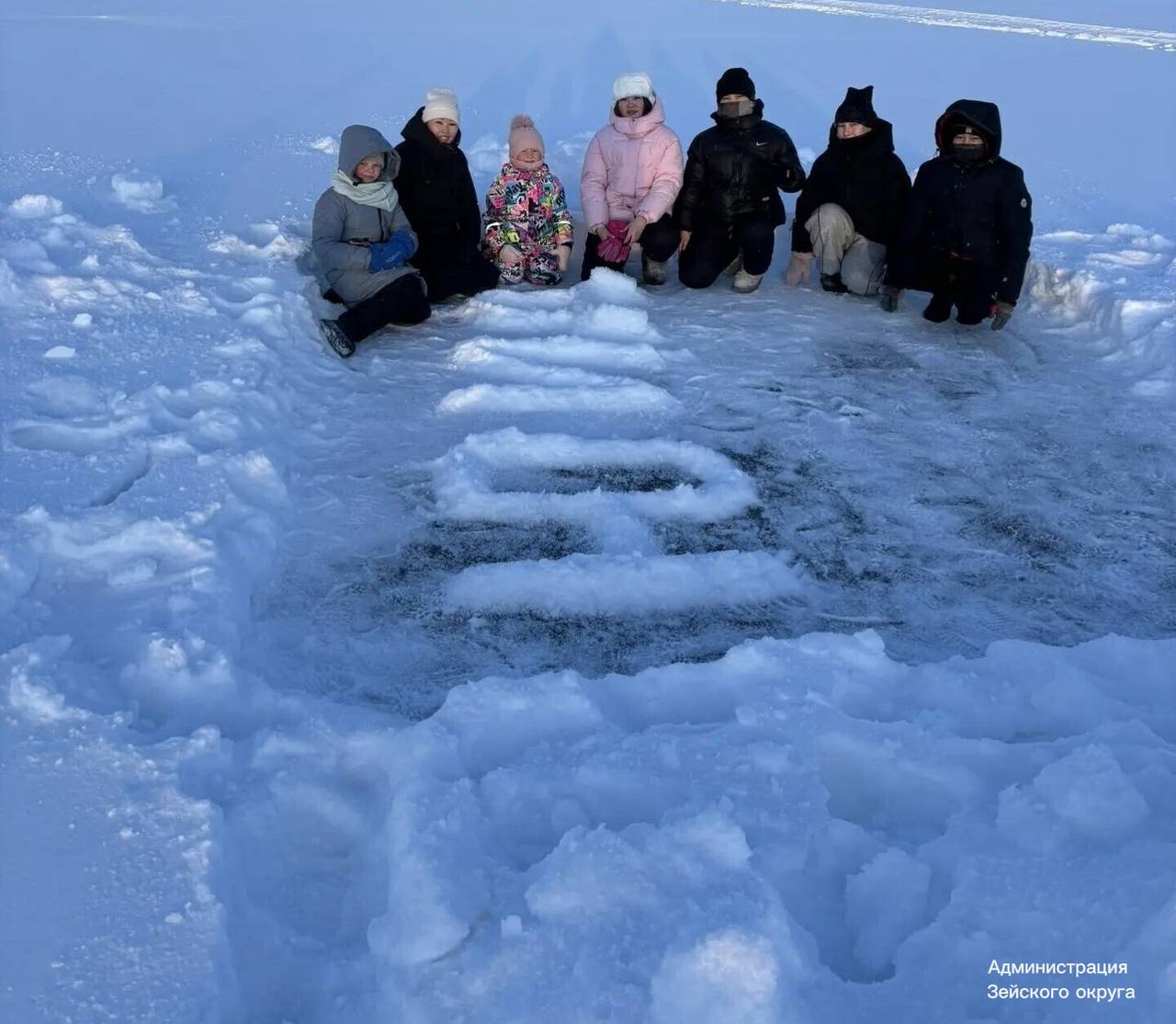 Юные инспекторы движения Зейского округа сотворили ледовую открытку. Замечательная акция прошла в селе Бомнак!