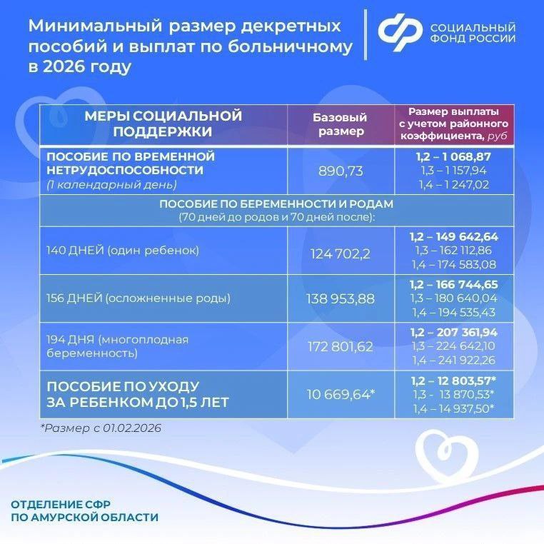 Размеры декретных пособий и выплат по больничным листам в 2026 году