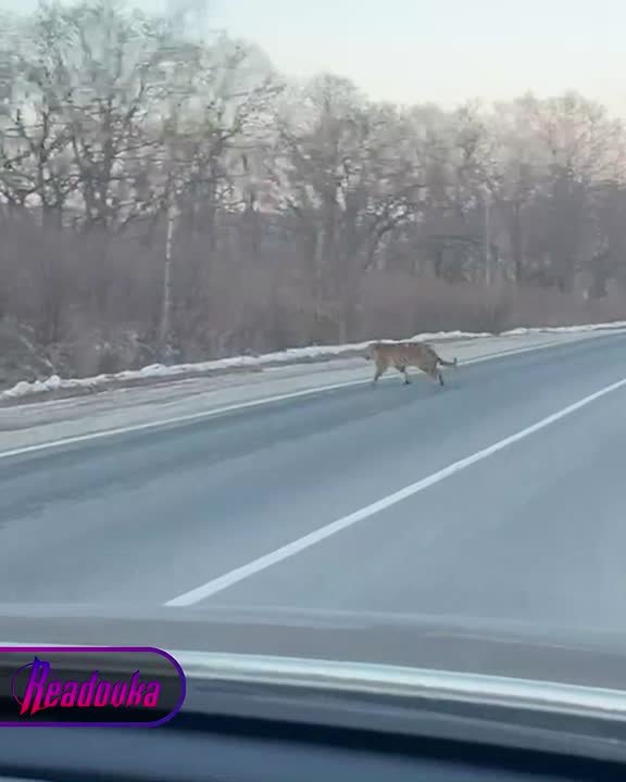 В Приморском крае водитель заснял на видео, как два амурских тигра бегали вокруг его машины посреди дороги. Пока один хищник спокойно переходил трассу прямо перед автомобилем, второй обогнал ее по обочине, а затем поднялся на заснеженный склон.