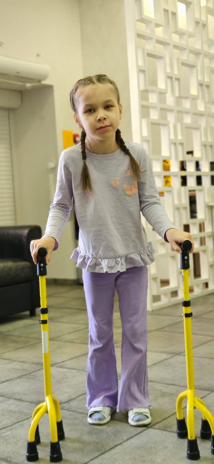 Милане в 1,5 года поставили диагноз ДЦП. С тех пор её жизнь — это борьба за каждый шаг. Уже позади сложная операция и множество курсов реабилитации. Сейчас Милана учится ходить с тростями и готовится к 1 сентября в обычной школе. Она умеет читать, считать и мечтает зайти в класс самостоятельно. А еще сыграть с папой в футбол.