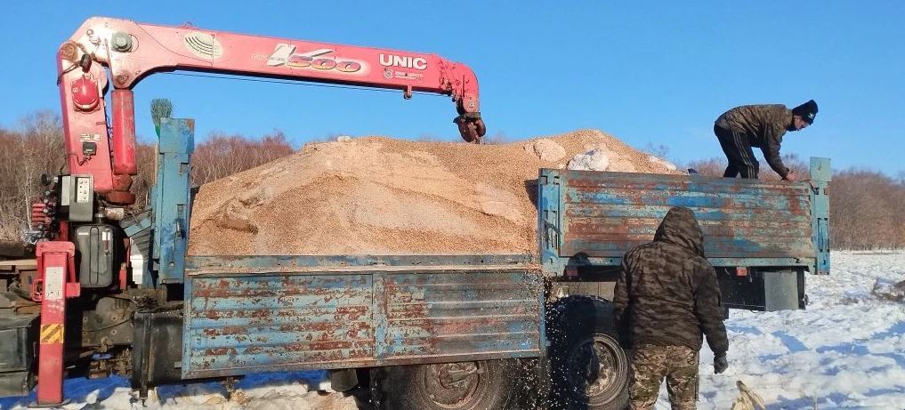 В амурском заказнике кабанов и фазанов порадовали шестью тоннами кукурузы