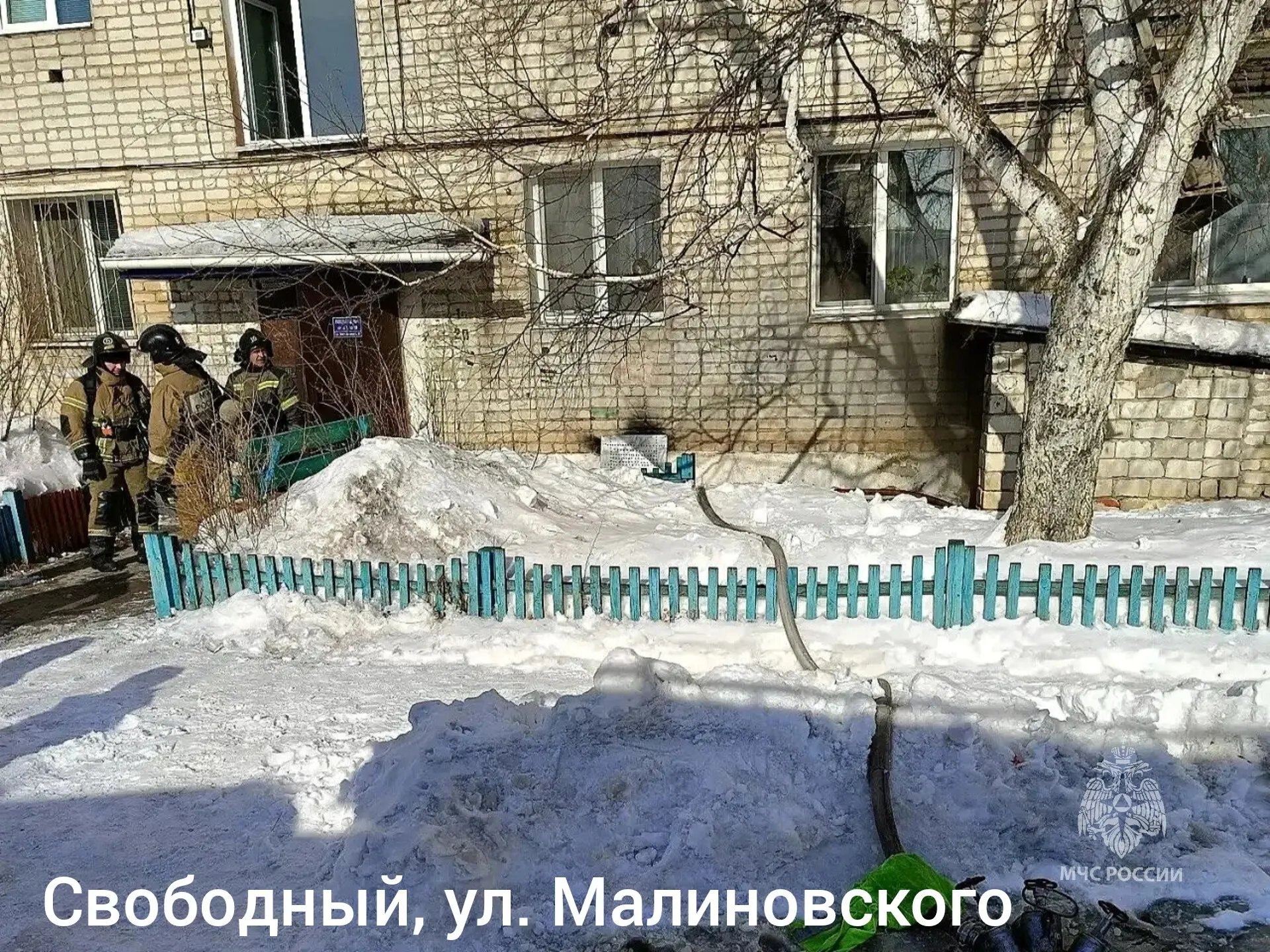 Еще один пожар в тот же день тушили в Свободном на улице Малиновского. Там в подвале пятиэтажного дома загорелись две кладовые. 28 жильцов дома, включая 13 детей, эвакуировали. Никто не пострадал.