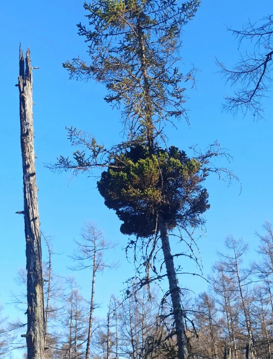 Специалисты лесничества заметили странную густую крону в глубине густого леса. «Мутант» появился на ели аянской. Он похож на дерево на дереве.