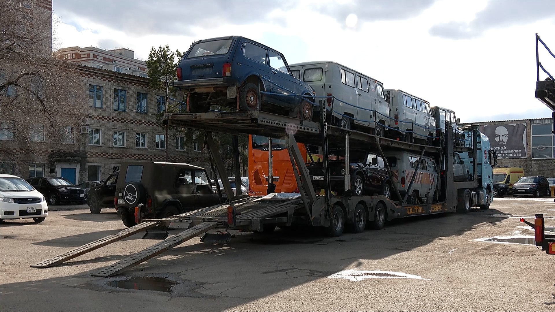 УАЗы и Нивы для бойцов подготовили Народный фронт при поддержке регионального правительства по заявкам 35-й Краснознамённой армии. Внутри транспорта — маскировочные сети, теплые носки, противодроновые одеяла, тепловизионные пончо, медикаменты.
