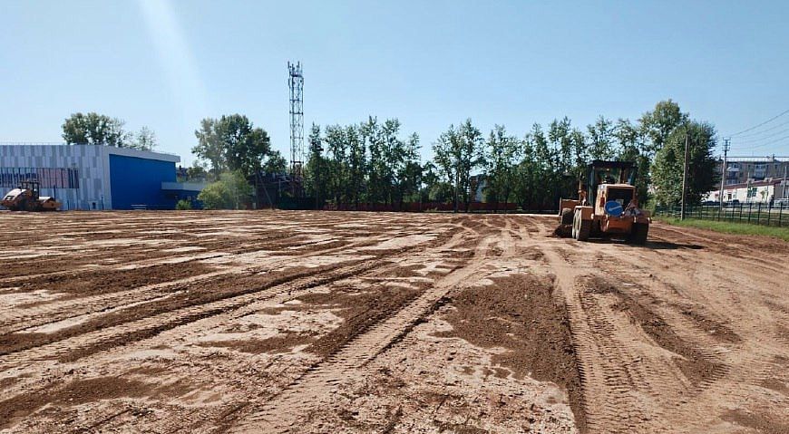 Сейчас специалисты заняты демонтажными работами, изготовлением арматурных каркасов и планировкой территории. Здесь появятся современное футбольное поле, уличное освещение, спортивные площадки с малыми архитектурными формами и комфортные трибуны....