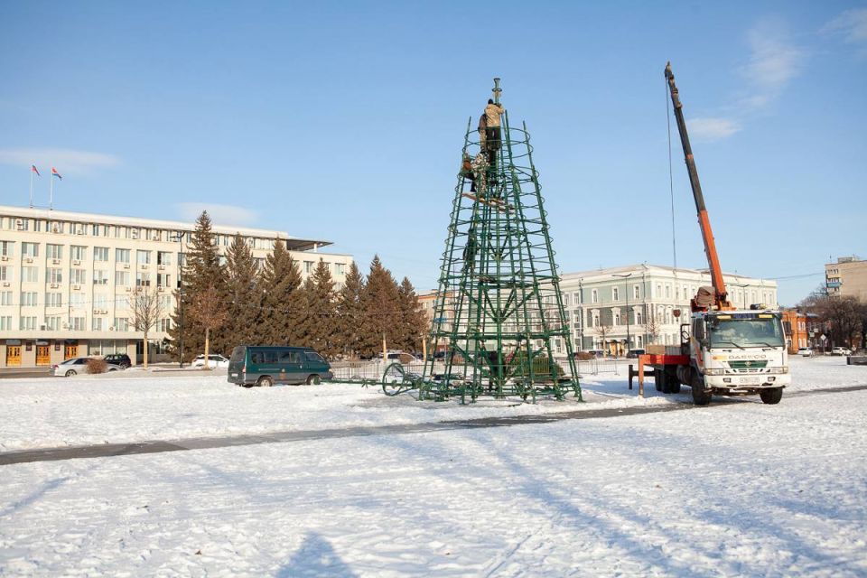 Конструкцию начали устанавливать в центре города недалеко от большой тюбинговой горки. Также на площади Ленина зальют каток.Искусственные зеленые красавицы также украсят парк Дружбы, площадку у Общественно-культурного центра, Плодопитомник и Моховую...