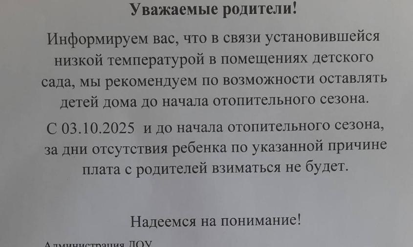Администрация детского сада № 19 города Зеи попросила родителей по возможности не приводить детей, чтобы не морозить.