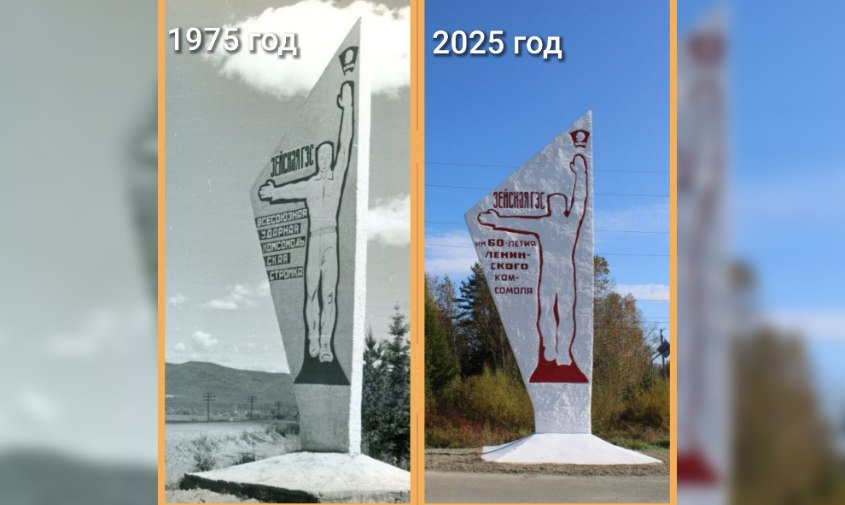 В Зее отреставрировали стелу, установленную на въезде в город. Как памятник выглядел в 1975 году и каким предстал сейчас, показал глава Андрей Бродягин.
