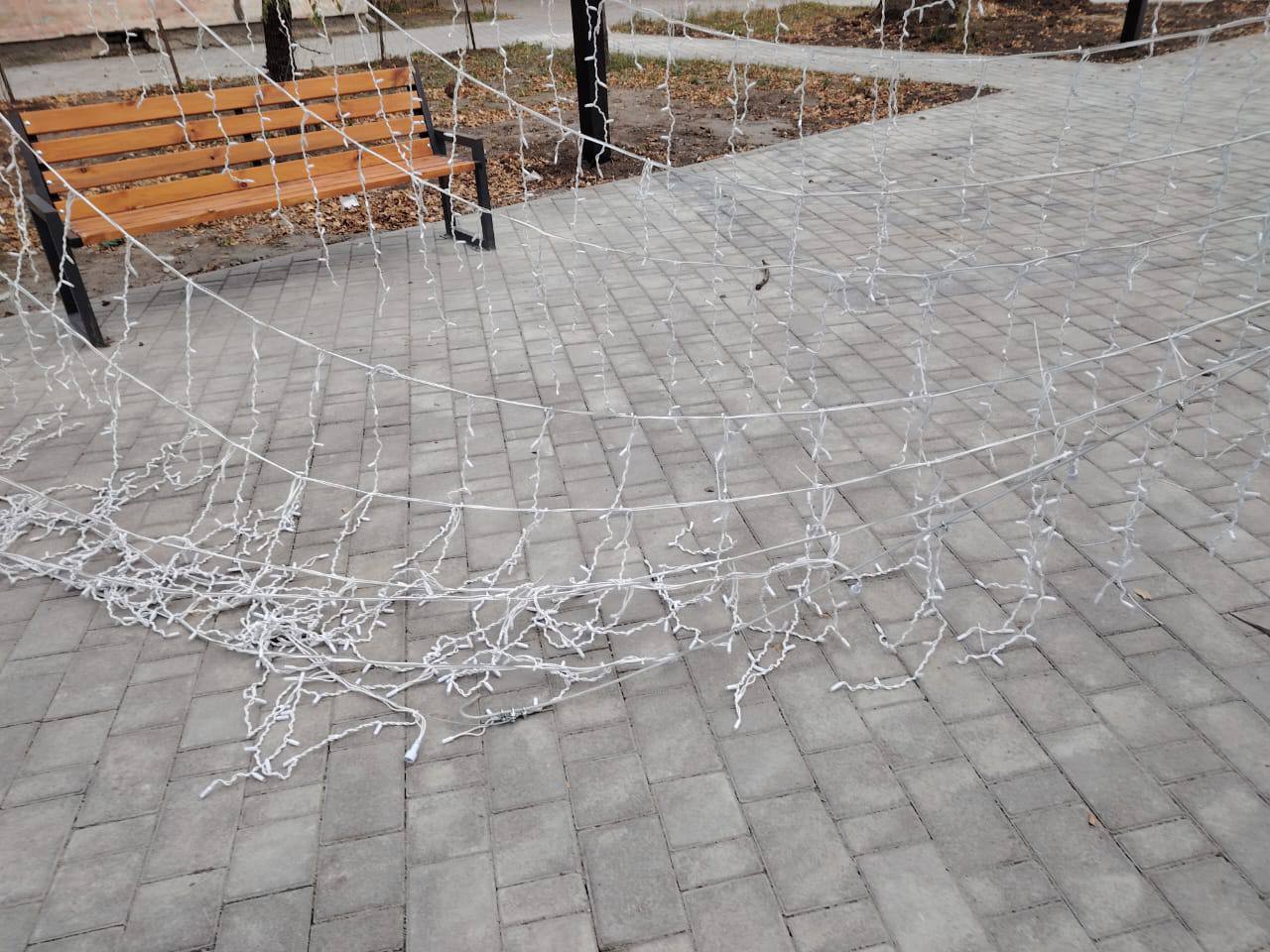 Предыдущий акт вандализма произошел меньше двух недель назад. Неизвестные вандалы также стянули с опор часть новой иллюминации.