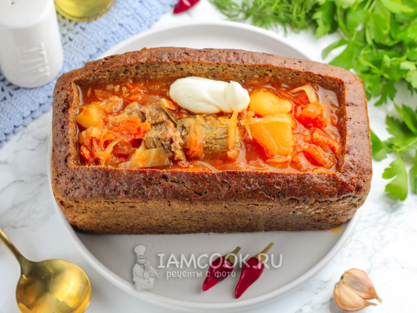 Этот борщ в хлебе не оставит равнодушным ни одного ценителя. Приятного аппетита!