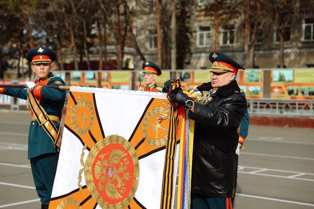 В среду, 15 октября, в ДВОКУ состоялось церемония вручения Георгиевских знаменных лент в честь присвоенного училищу почетного звания «гвардейское». Поздравить личный состав прославленного училища в Благовещенск приехал главнокомандующий Сухопутными войсками, Герой России, генерал-полковник Андрей Мордвичев.