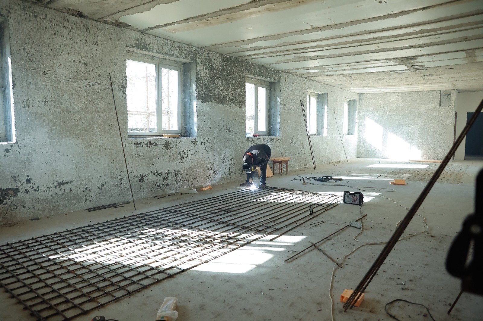 Объект готов на 40%. Специалисты обновили пол, заменили электропроводку. Сейчас монтируют систему отопления и обновляют фасад.
