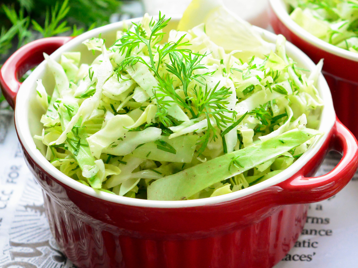 Для начала, необходимо подготовить капусту. Молодая белокочанная капуста в данный период времени особенно сладкая и хрустящая. Сначала ее надо тщательно промыть, а затем тонко нашинковать. Если капуста не совсем молодая, стоит немного перетереть ее руками — это поможет ей пустить сок и стать мягче, что шевелит основную текстуру блюда.