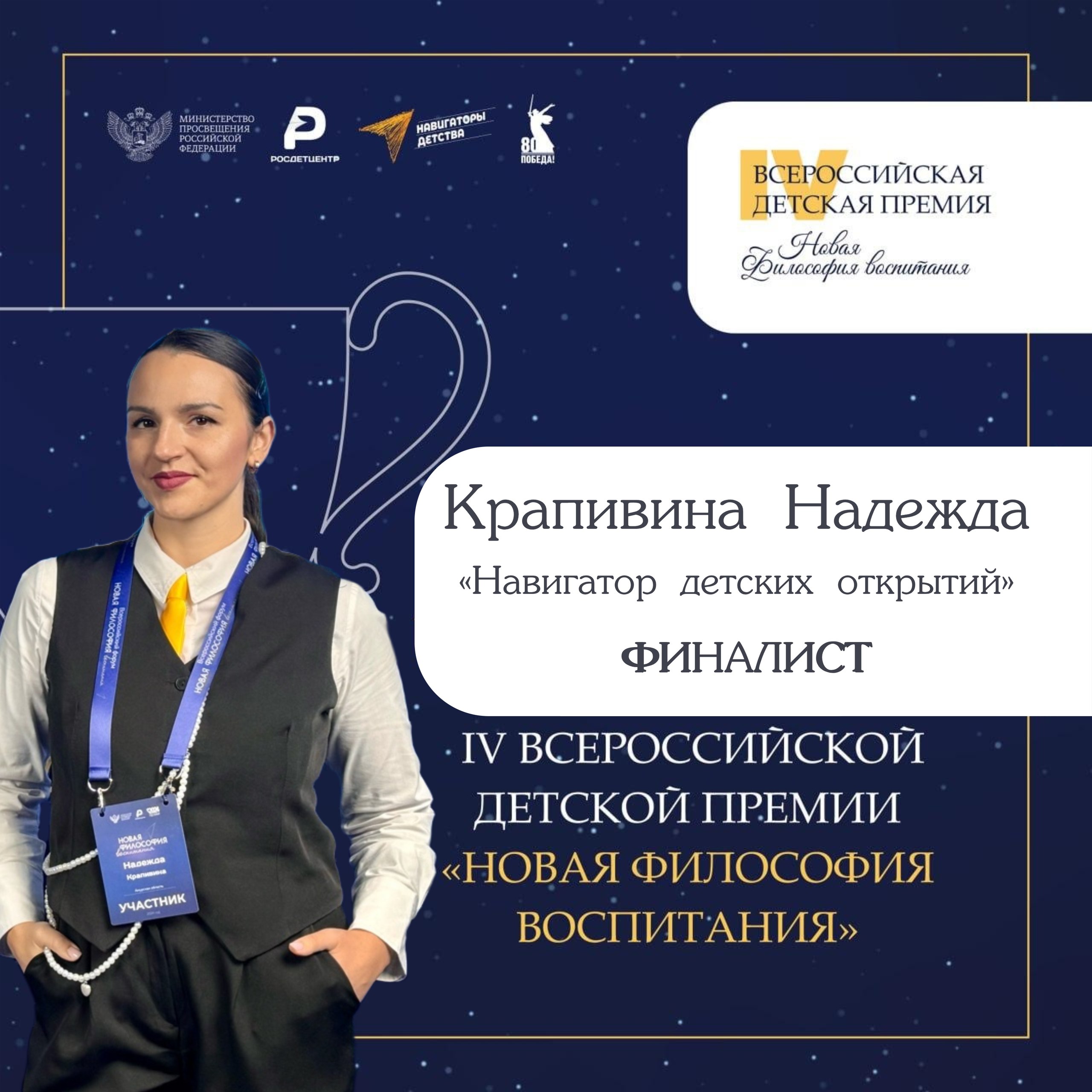 Советник директора по воспитанию из благовещенской школы № 5 Надежда Крапивина вышла в финал IV Всероссийской детской премии «Новая философия воспитания»!