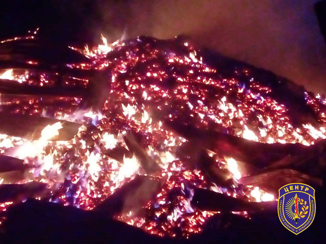 В селе Лиманное Серышевского округа тушат пожар в сельскохозяйственном складе. Кирпичная постройка размером 60 х 20 х 6 метров заполнена продуктами переработки кукурузы.