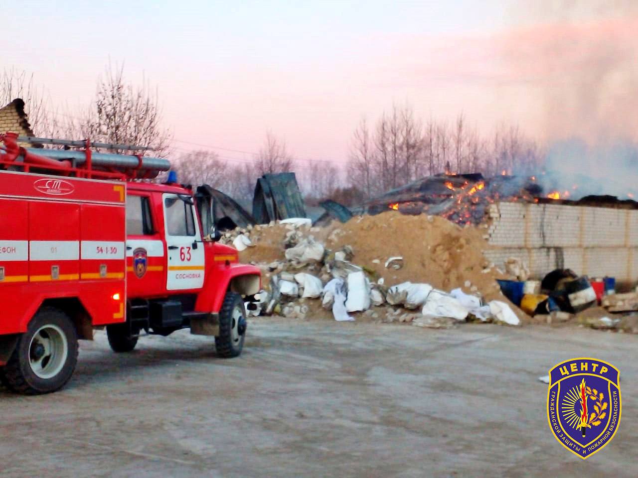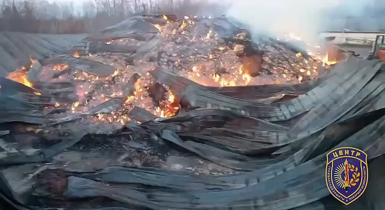 В пожаре полностью сгорели деревянные конструкции крыши, металл кровли удалён для возможности тушения. Чтобы предотвратить распространение огня, металлические ворота склада засыпали песком.