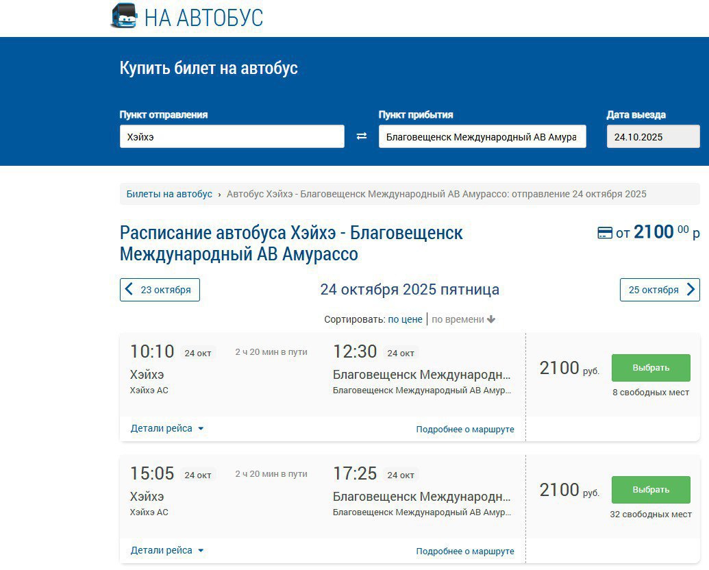 Купить билет на автобус из Благовещенска в Хэйхэ теперь можно онлайн