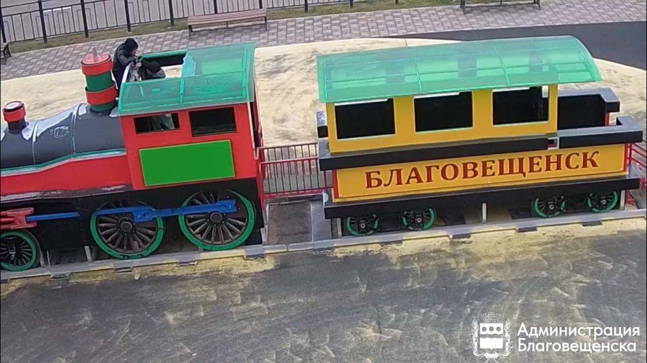 В Благовещенске ребята решили «украсить» паровозик на игровой площадке на Пионерской. Однако их творчество оценили не все. Происходящее попало в объективы камер.
