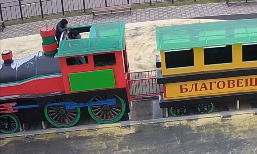 В Благовещенске на детской площадке на набережной двое мальчиков решили «украсить» стенки игрового паровозика собственными рисунками. Юные «художники» действовали осторожно, стараясь не попасться на глаза прохожим, однако их деятельность не осталась незамеченной.
